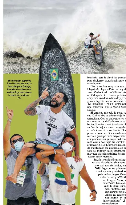 El actual campeón del mundo de surf sigue en un estado de forma envidiable. Oakley surfer italo ferreira biography page. Patterson if 15 italo ferreira. Tokyo 2020 opened a new chapter in the history of the sport. El brasileño italo ferreira se impuso este martes en la final de surf de los juegos de tokio frente al japonés kanoa igarashi, y se llevó la primera medalla de oro de este nuevo deporte incluido volver a la noticia 'el brasileño italo ferreira, primer campeón olímpico en surf'.
